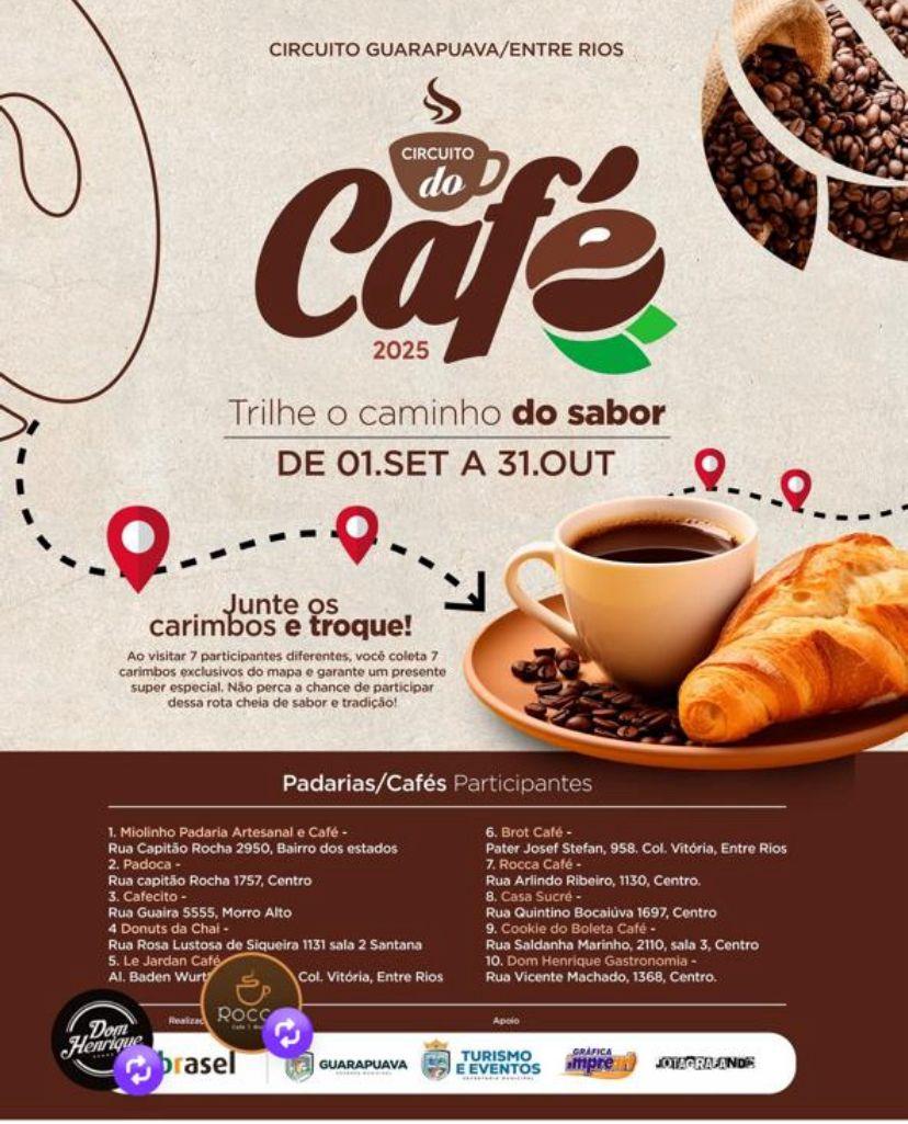 Os aromas e sabores do café estão tomando conta de Guarapuava com o Circuito do Café 2025, promovido pela Associação Brasileira de Bares e Restaurantes (Abrasel) com o apoio do Sebrae/PR e da Secretaria de Turismo e Eventos do município. A ação, que acontece até o dia 31 de outubro, reúne 11 cafeterias locais em uma trilha de experiências gastronômicas pensadas para valorizar o produto, fortalecer os empreendimentos e estimular o turismo na cidade.